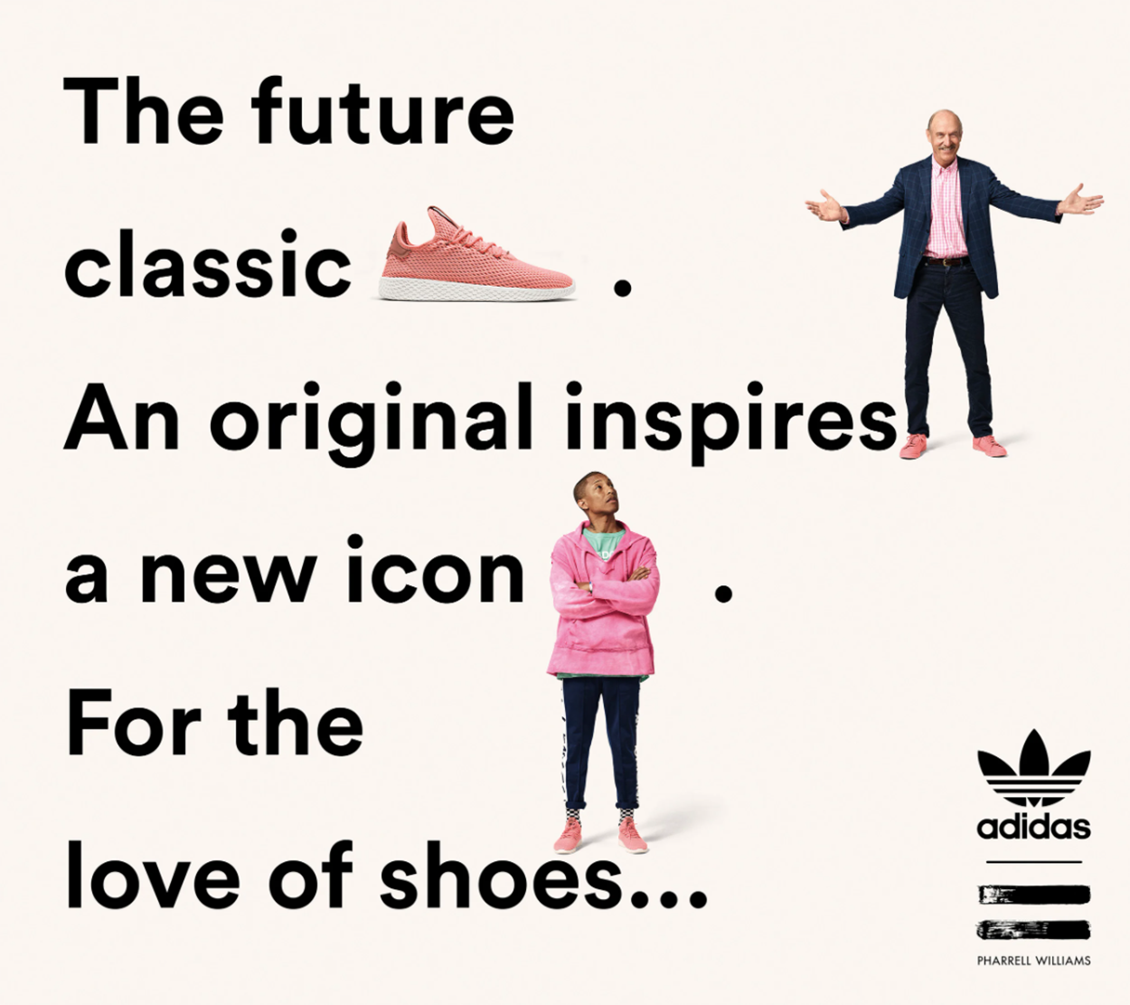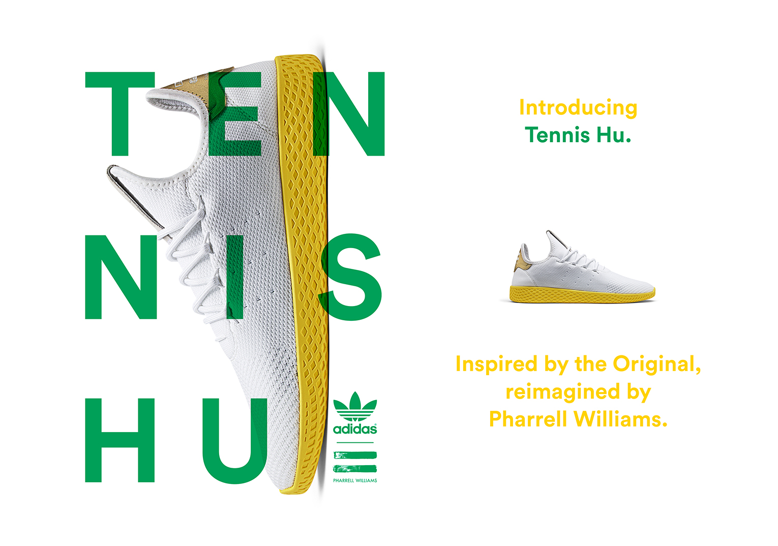 Advertising campaign for Tennis Hu sneaker collection by Adidas X Pharrell. Inspired by the original, reimagined by Pharrell Williams.